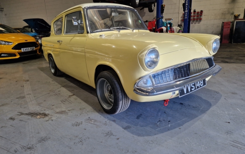 Ford Anglia 105E which has been modified and turned into a fast road / track car. The car is really solid has had loads of money spent on goodie bits. It starts, runs and drives and goes well. Be a great little pocket rocket for someone. We have the V% here but no history. Car is registered as Historic.