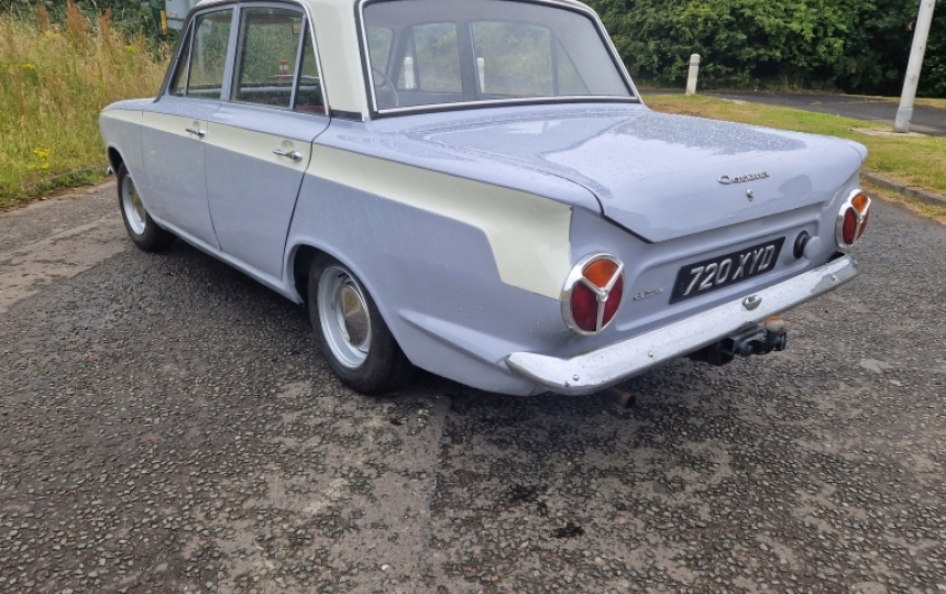 Ford Mk1 Consul Cortina 1500. First Reg 1964. Charming old car which starts runs and drives and appears to be very good mechanically. We have the current V5 here but no real history with it.