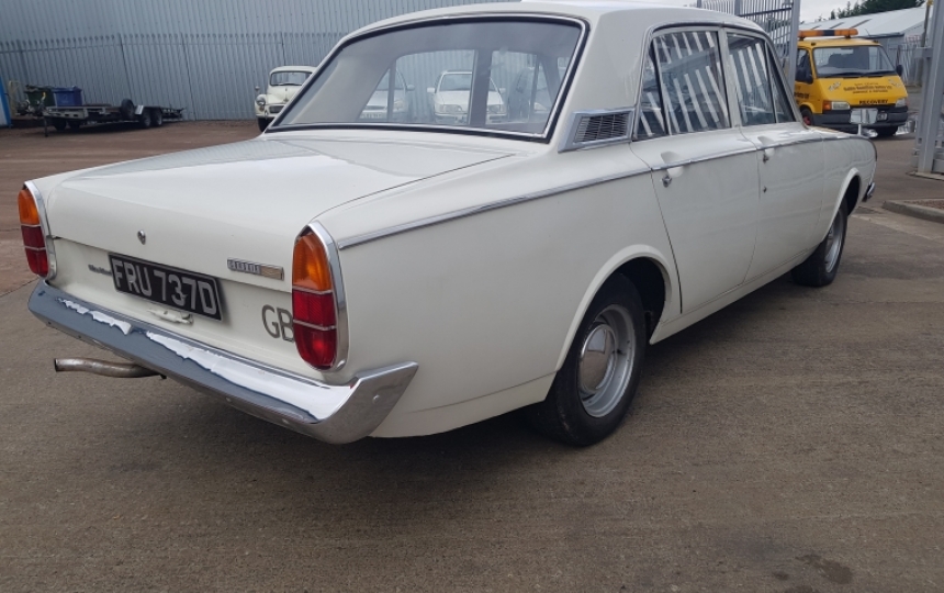 Ford Corsair 1.7 V4 Auto, 86000 Miles, 2 Previous Owners. This car was hidden away for about 30 to 35 tears in dry storage and was then restored in 2009 with not a huge amount of use since. Its very very solid and original in terms of the metal work. It appears to be all original underneath as do the arches, sills etc. Structurally definitely the best one ive seen. Car was painted when it was restored and is very presntable. There is some microblistering appearing here and there. Mechanically the car is very good, It starts first time and the engine is quiet with no smoke nor rattles. Gearbox works as it should. Slight leak from gearbox sump so may need a gasket replacing at some point in the future. Genuine Lotus steels have been fitted.