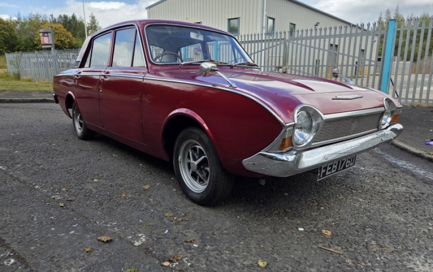 1966 Corsair 1.7 V4 Auto. Car starts runs and drives but will need work. We have the current V5 showing only 4 previous owners, the original service book for the car, some receipts and old MOTs dating back to 1971. It looks like a car that has had a few period repairs and been tucked away for a long time.