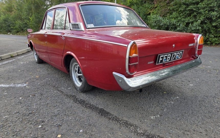 Mechanics - V4 engine which starts and runs. It was a bit misfirey, if thats even a word, but we put a set of plugs in it and its much better. it runs and drives and the auto box changes gears ok. The selector on the column shift needs adjusting somehow as it doesnt line up properly with the gear you are in. Brakes feel ok. Fuel time has been temporarily replaced with one from a Cortina mk1. The filler neck doesnt line up so this will need addressing. Car will need a good checkover from front to back before being used in anger