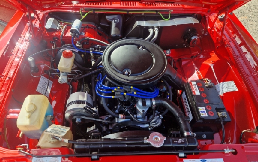 Body - Genuine South African XR6 with 5 link back axle set up. The car was stripped to a shell and only required a very minimal amount of metalwork. It was then taken back to bare metal and repainted in its original Venetian Red with black accents. The paintwork is superb and all the detail is correct. It has genuine Ford logod matching, headlamps and spotlamps, NOS rear lights, original matching glass and top tint windscreen, rear window louvre, correct colour coded bumpers.