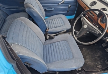 Interior - Super rare Blue 1300E interior and matching blue door cards. Correct 6 dial dash and wood finishings. Still has the ice scraper in centre console. Lovely original interior.