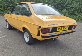 1980 Ford Escort 1600 Sport. RHD Import from South Africa with all tax and duty paid. UK reg has been received and we have the V5 here. This car is in its original sunflower colour and is a genuine sport. Both the original vin plate and build plate are intact. It starts runs and drives but will need a bit work to get it on the road properly.