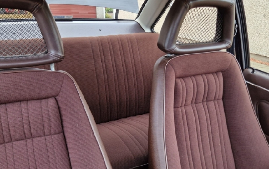 The interior is the factory correct custom Fishnet Recaro chocolate brown betacloth. The front seats have been recovered in original betacloth obtained in Europe, The rear seats untouched and factory original. The owner obtained a genuine NOS custom deep pile carpet, exceptional door cards, handles, headlining, dashboard, clocks, glovebox, switchgear, parcel tray, rear parcel shelf, even has the correct sound deadening panel under the steering column. You will struggle to find fault.