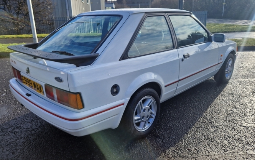 Ford Escort XR3i with only 3 owners and a genuine 25000 miles from new. This is a lovely original example which comes with a years MOT. Still has its original dealer plates and window sticker. We have the original book packs, service book showing 4 stamps from the supplying dealer. We also have a few old MOTs. It appears the car was off the road in storage for a while. The mileage is genuine.