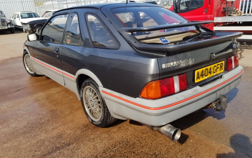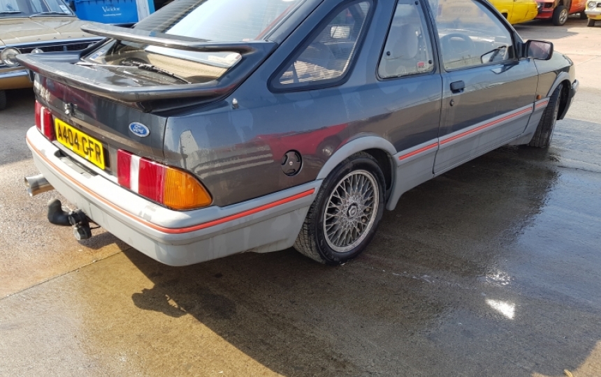 Ford Sierra XR4i Turbo Technics which has only covered 59k from new with 2 owners . The car has been dry stored since 99/2000 when it was last taxed and is in pretty good order for its years. It has great potential but will need recommisioned or a light restoration.