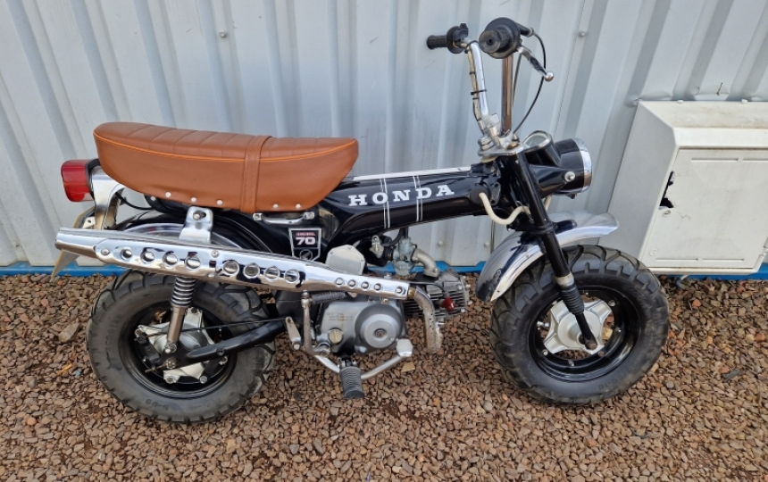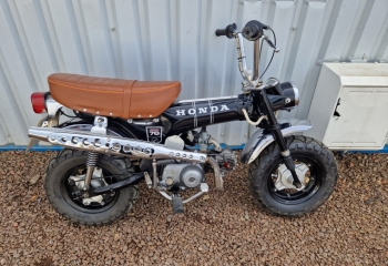 Original 1973 Honda DAX ST70. This one is a UK bike. It was recently pulled out a collection and its up and running. We have the V5 here and a couple of old MOTS
