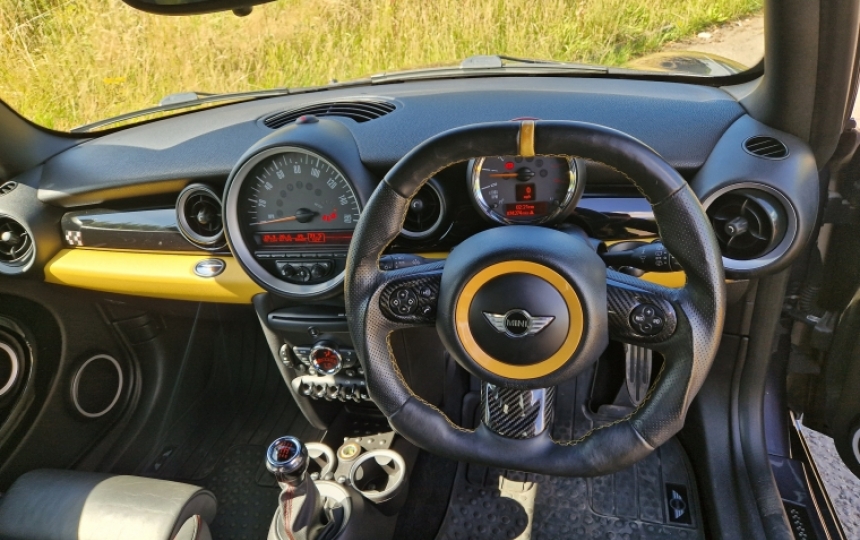 Lovely little 2011 Mini John Cooper Works in Metallic Grey. 5 Previous Owners and covered just 74000 miles. We have the handbook and service book with 6 stamps in the book. Oil Service just done. Very tidy example which drives spot on. Paintwork is very tidy with no nasty dings or dents. Leather seats which are in good order. Very quick little car with phemonenal brakes.