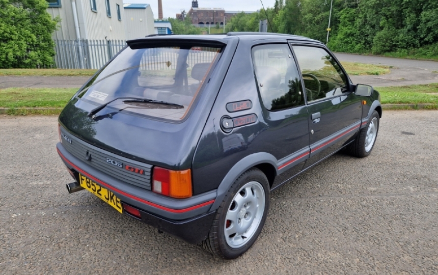 Peugeot 205 GTi 1.9. 110,000 Miles. Comes with V5, original bill of sale,2 sets of keys, original handbooks with service book which has 6 stamps in it. Lots of old MOTs and a huge folder full of receipts for parts and servicing. Current owner has had it 2 years and has extensively recommissioned the car. Prior to that it was in storage from 2014.