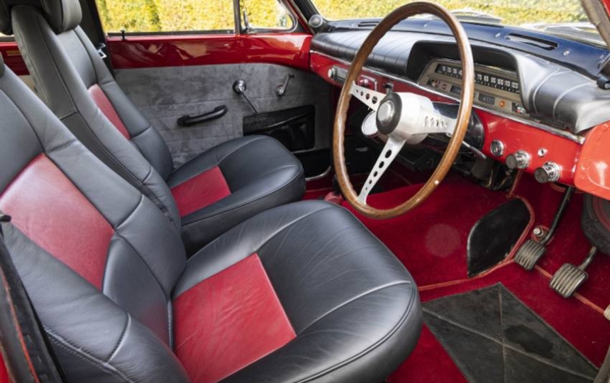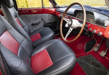 To make it more appropriate for modern day family driving, it has a push button start, new inertial-reel front belts, comfy Saab 900 seats upholstered in red and black bull hide, full underlay and hand-made Wilton carpet throughout, custom made Cerwyn Vega sound system installed, leaving the original radio intact.